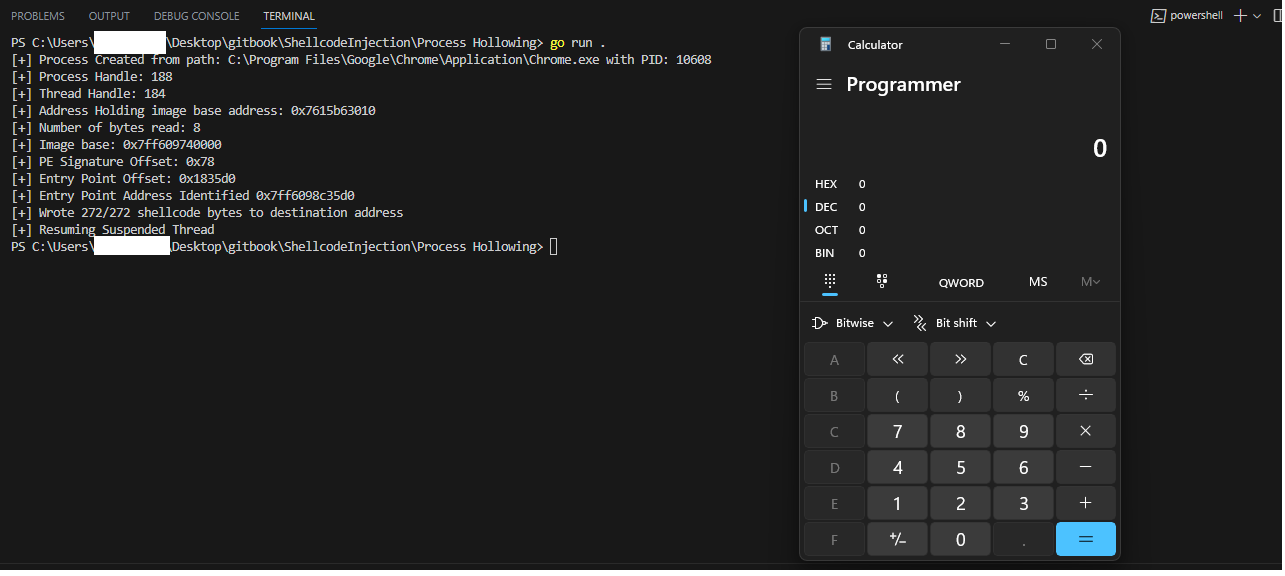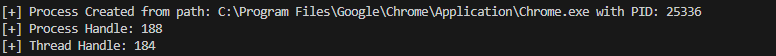 fmt.Printf("[+] Process Handle: %x \n[+] Thread Handle: %x\n", outProcInfo.Process, outProcInfo.Thread)
